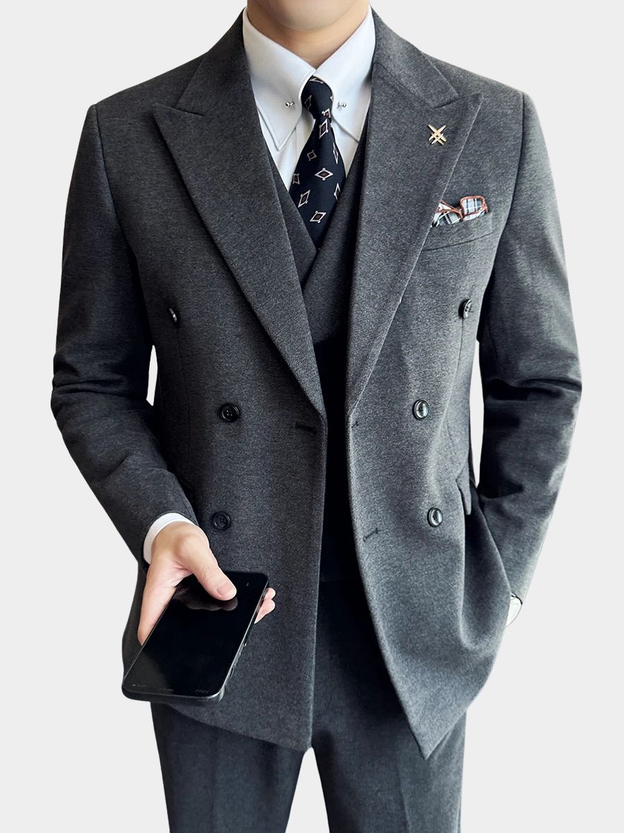 Costume Masculino Transpassado Risca de Giz Cinza Escuro Maximus